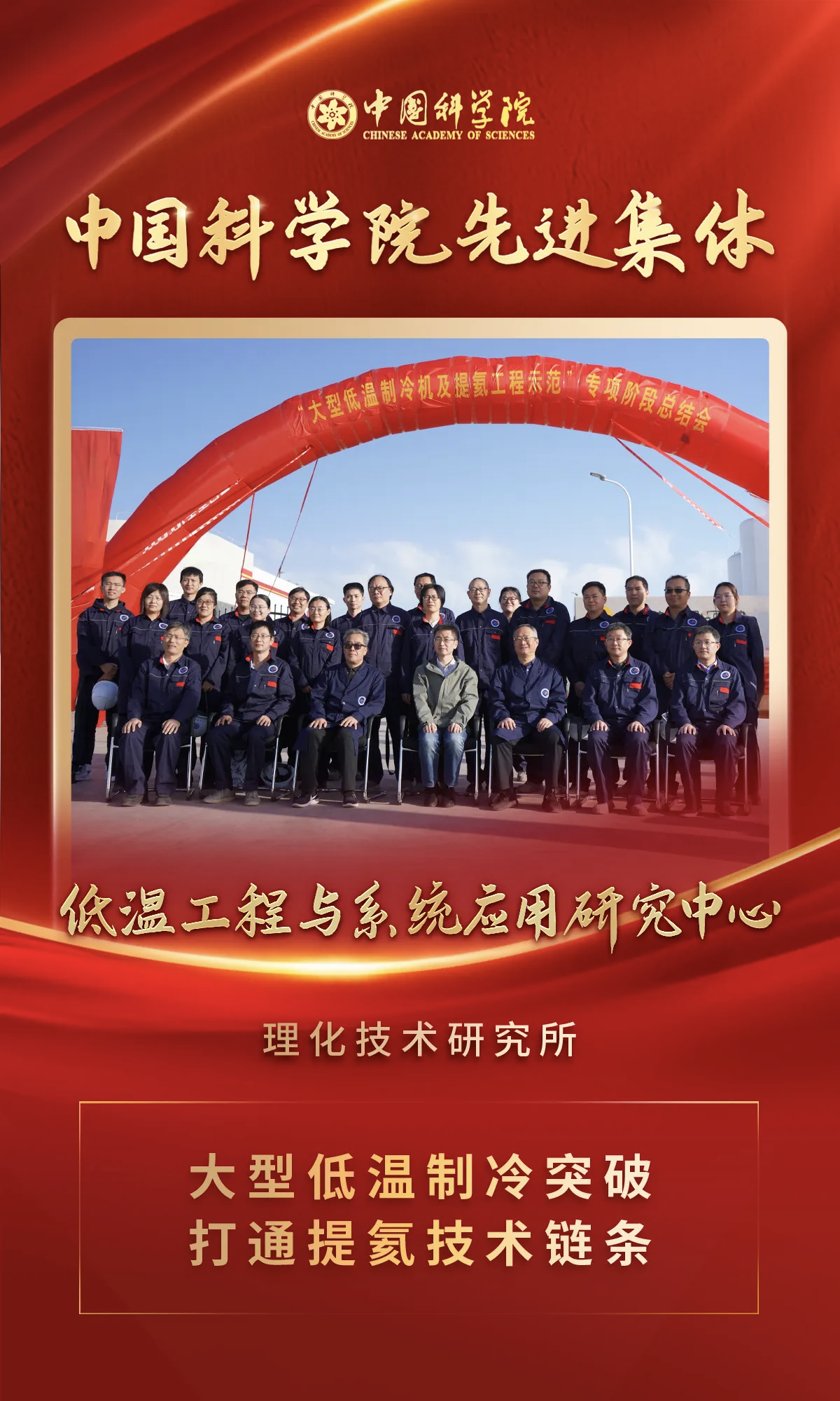 理化所低温工程与系统应用研究中心团队荣获“中国科学院先进集体”称号