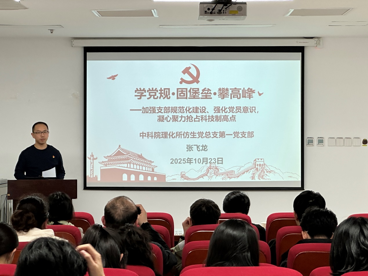 10月23日,仿生智能界面科学中心第一党支部召开支部大会并开展了系列活动。此次会议由支部书记郑美玲主持,党委书记王树涛以普通党员身份参加会议,支部组织委员万茜子同志组织预备党员转正工作,郑美玲和副书记田野、宣传委员张飞龙分别领学专题活动。40余位党员同志参加了此次会议。