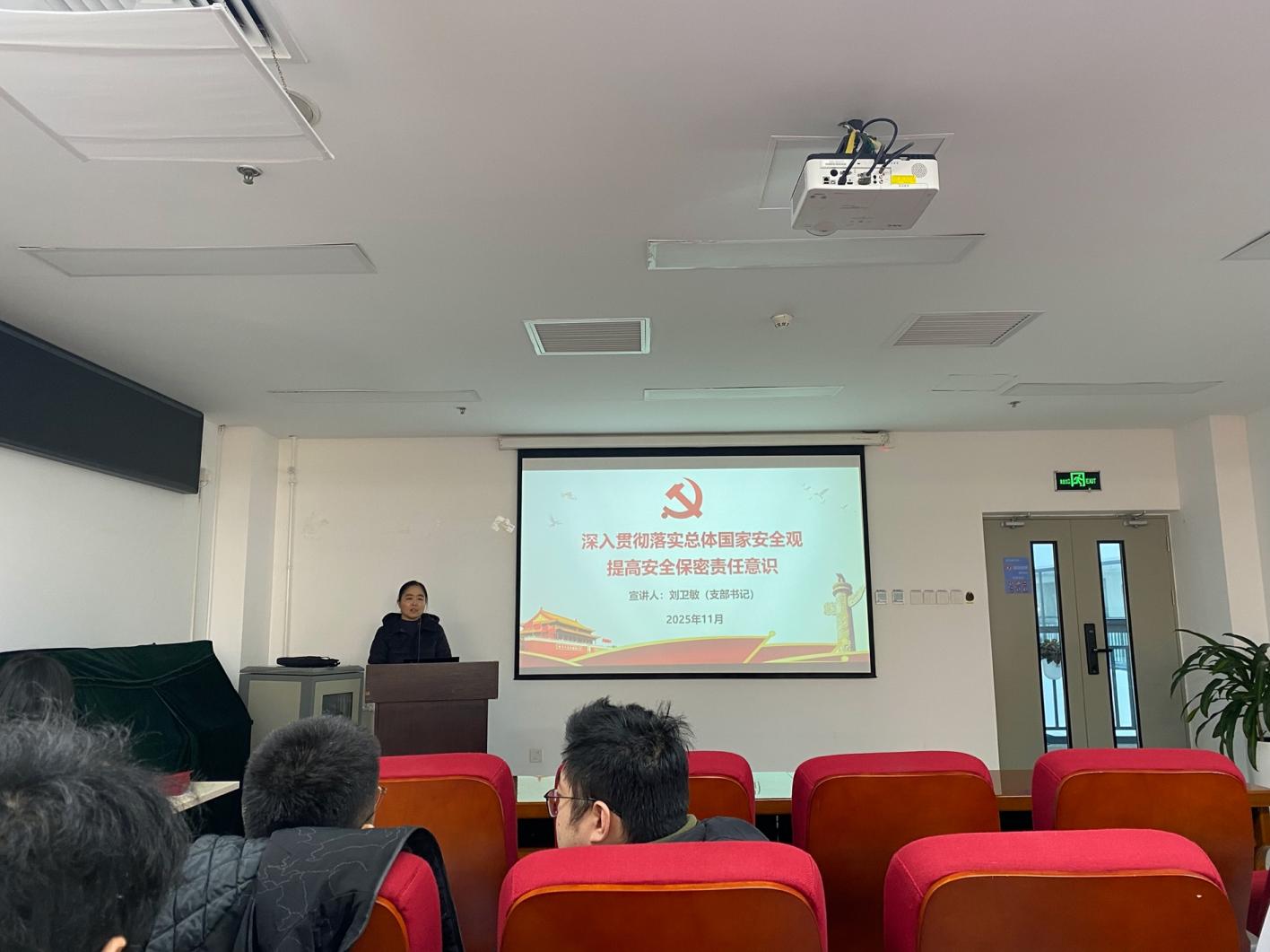会上,刘卫敏以“深入贯彻落实总体国家安全观,提高安全保密责任意识”为主题讲授专题党课,系统阐述了总体国家安全观的重大意义与核心要义。她结合科研工作实际,深入分析了当前科技领域面临的安全保密挑战,要求全体党员深刻认识国家安全工作的重要性,自觉将维护国家安全贯穿于科研活动全过程,严格遵守保密法规,筑牢安全保密防线,为实现高水平科技自立自强提供坚实保障。