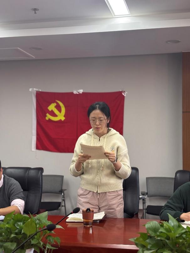 首先,支部副书记张兵带领全体与会党员深入学习了二十届四中全会精神。她鼓励广大党员结合生物材料与应用技术研究中心的实际工作,将思想和行动统一到党中央的决策部署上来,深刻领会“发展新质生产力”和“实现高水平科技自立自强”的战略指引。