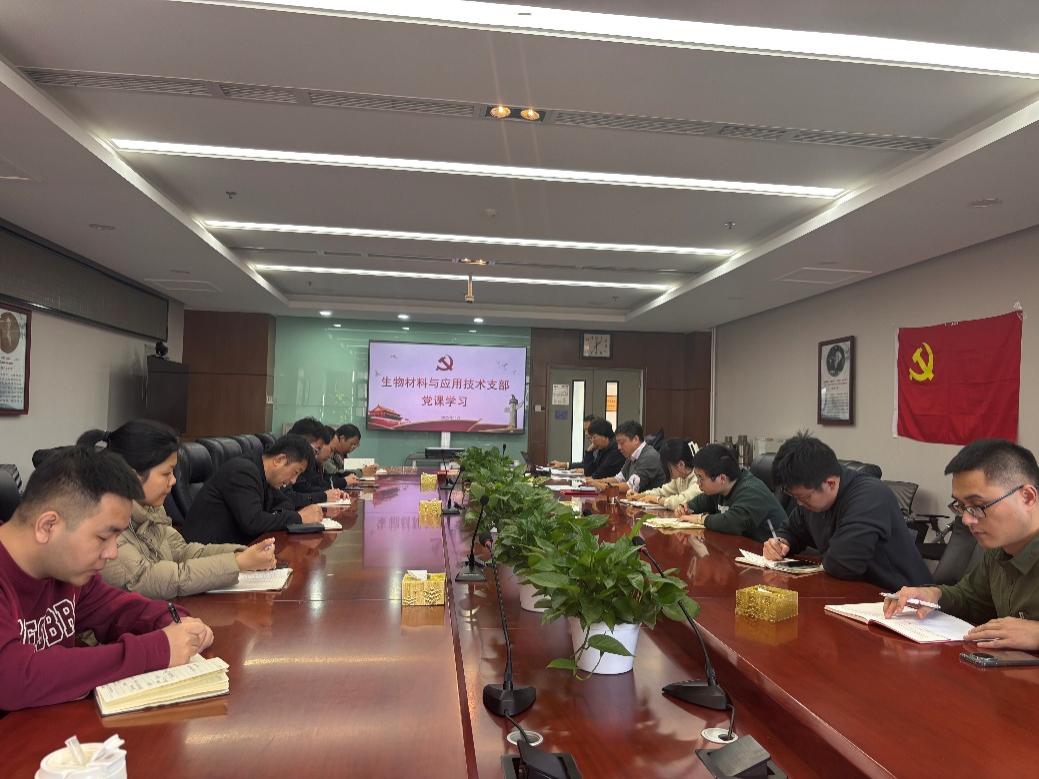 11月25日,生物材料与应用技术研究中心党支部在1号楼302会议室召开全体党员大会,会议由支部组织委员郑苏江主持。