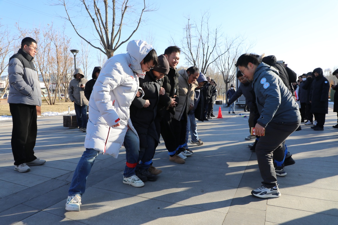 活动伊始,各分工会在指定地点集结自己的队伍,并为每位参加活动的职工发放有理化所标识的袖标和集福手卡。随后,在健身教练的带领下,全体活动人员跳起了“刀削面”热身操,满操场的欢声笑语驱散了深冬的寒意。