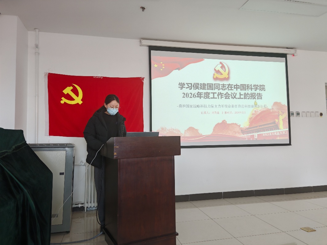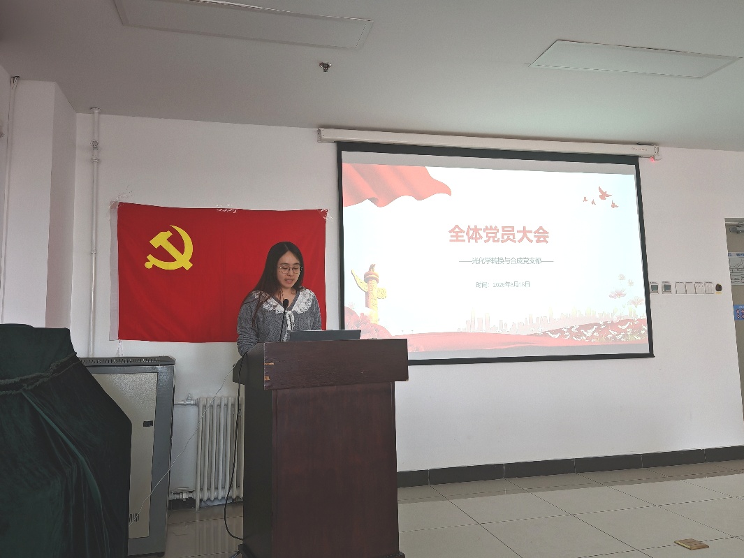3月18日,光化学转换与合成党支部召开全体党员大会,学习侯建国同志在中国科学院2026年度工作会议上的工作报告。