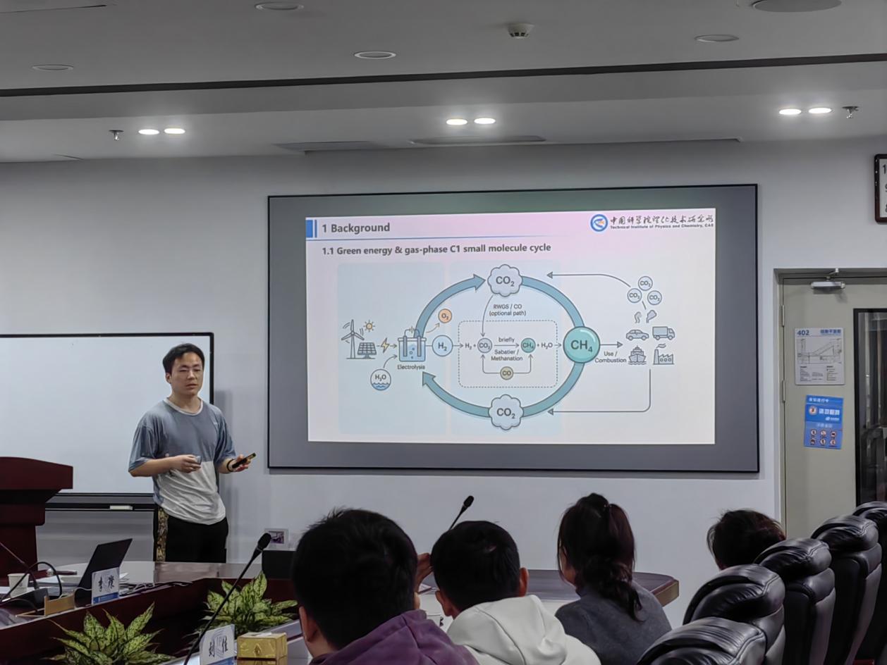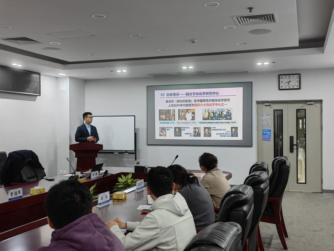 当晚,两支部在理化所召开“对标‘四强’党支部,联学互建促提升”交流会,会议由支部组织委员李璨主持。会上,李璨代表超分子光化学党支部作支部简介与工作汇报,西工大玛丽女王工程学院第四党支部书记刘佳副教授作工作情况介绍,超分子光化学研究中心党支部李治军研究员作中心科研工作介绍,双方围绕推动党建与科教深度融合、提升工作实效展开交流探讨。随后,超分子光化学党支部学生党员作学术报告,双方就未来学术方向及具体科学问题进行了深入研讨。最后,参加会议的理化所西工大校友与西工大学生党员围绕学术深造等话题展开交流。