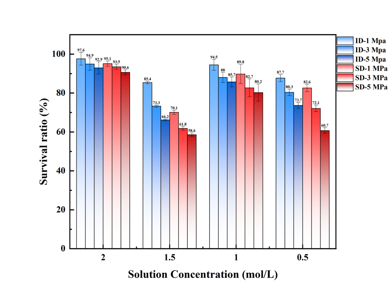 图5 HAMs在等静压1,3,5 MPa下的存活率