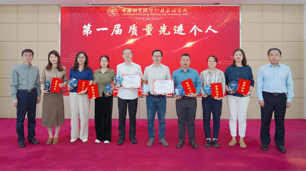 会上,郭晓勇副所长宣读了理化所第一届质量先进部门和个人表彰名单。脉冲管制冷及空间低温系统技术研究中心、低温工程与系统应用研究中心、成果转化处三个部门获理化所第一届质量先进部门,顾开选、李建国、李强、王雪、刘艳红、赵新、吴琼、孙瑛八名同志获理化所第一届质量先进个人。会上对获奖部门和个人进行了颁奖。