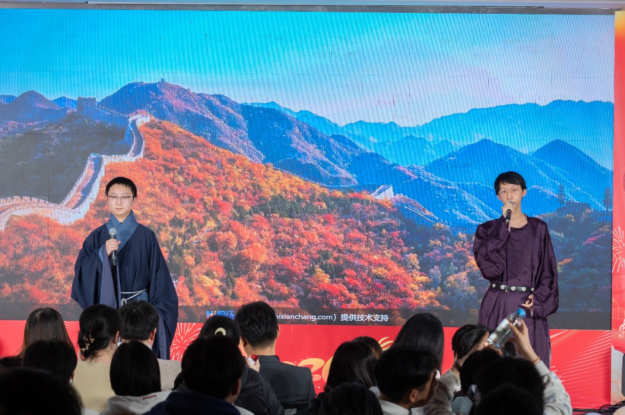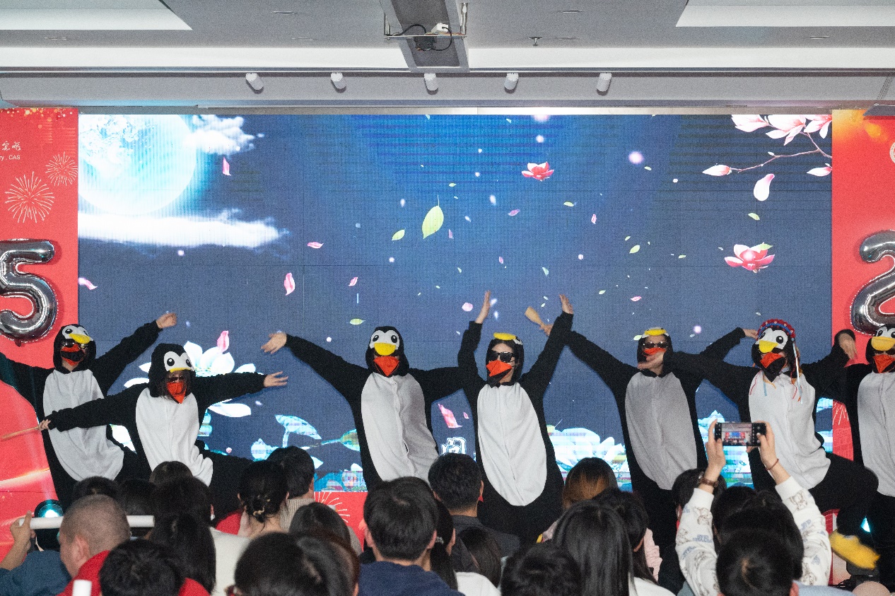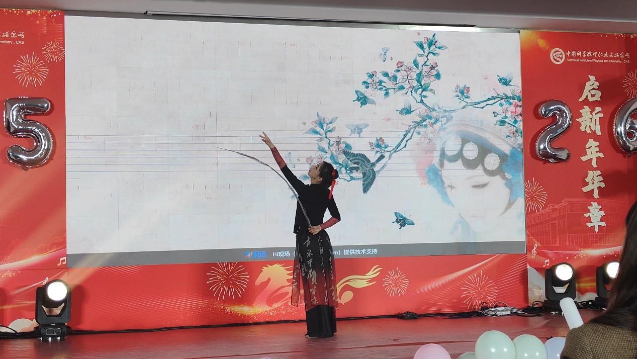 创意舞蹈《拉丁-京韵》融合百老汇爵士与国风拉丁,以中西风格碰撞惊艳全场;国科大民族管弦乐团的乐器演奏《梦长安》,引领观众穿越千年领略大唐盛世;肖望等同学的《一起普通卡拉OK》,诠释想唱就唱的洒脱与热爱勇气;王雨璐的独唱《父亲写的散文诗》,以深情旋律重温与父亲的幸福岁月;姜千玥的古典舞《伶人》,在传统与现代韵律中传递穿越时空的唱叹;赵俊婷等同学的《舞蹈串烧》无缝衔接三种风格,燃动全场氛围;赵珅的吉他独奏《miracle》,于指尖旋律中见证平凡日子的小奇迹;胡天瑞等同学的合唱《古月照今尘》,唱响跨越千年的千秋浩气与坚守;王凌琪等同学的《最后一页》,以歌声唤醒时光里的悸动与勇敢;国科大HDCrew街舞社的《wannabe》,用动感节奏彰显科研人的青春活力;李珍玲等7位同学的《冰雪夜・名媛舞会》,化身企鹅传递冰雪浪漫与新年欢喜;申涛等同学的小品《谢谢你·劫匪侠》,以惊喜剧情为科研生活增添欢笑;博士合唱团的歌曲串烧,融合《掀起你的盖头来》与《思念》的不同韵味,风格碰撞尽显魅力;研会同学的《第一天》,满含对新年的期许与奋进勇气,送上新春祝福。