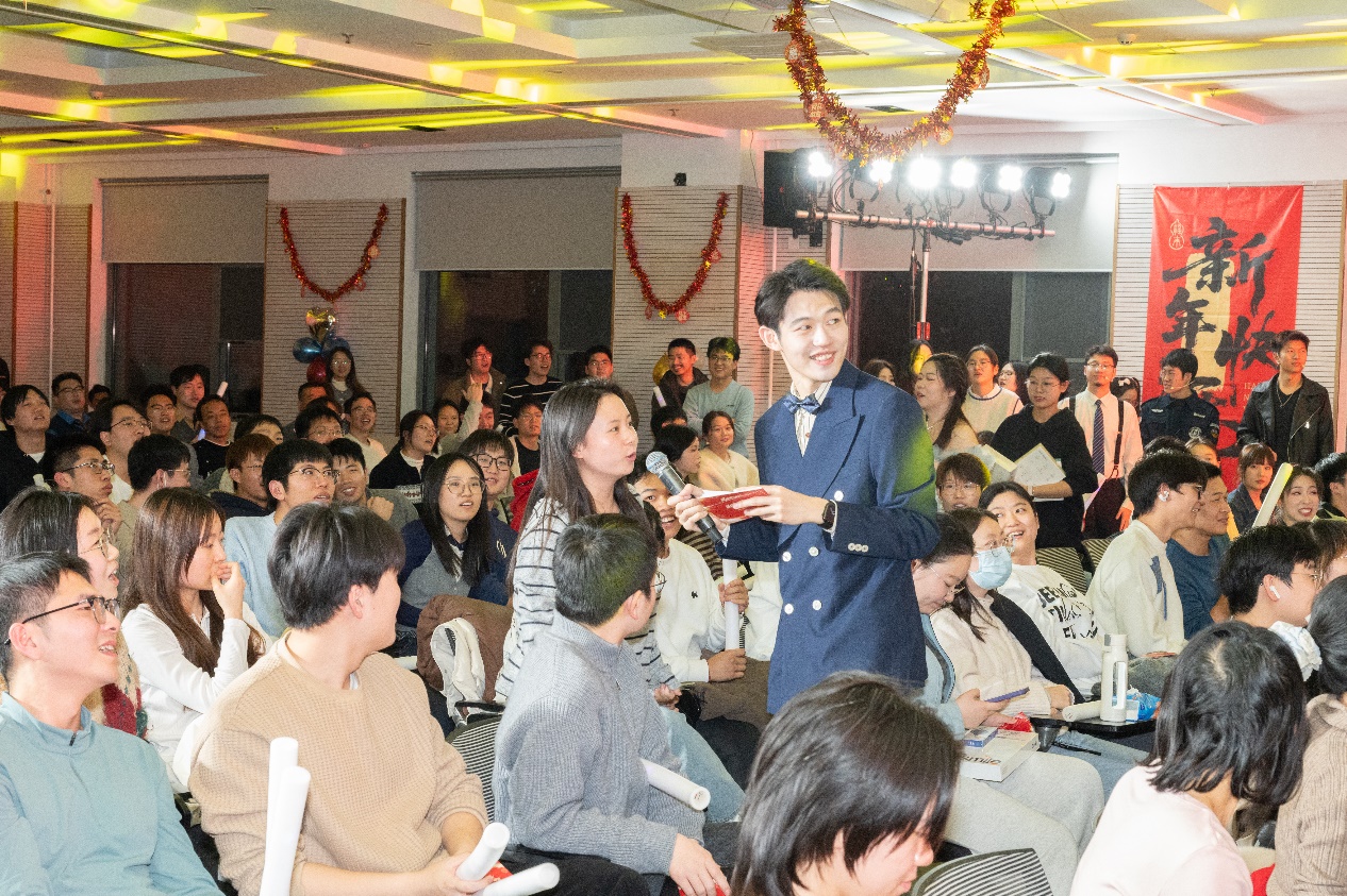 晚会间隙设置的互动小游戏与抽奖环节,进一步活跃了现场氛围,让师生在轻松愉悦的互动中增进情谊。此次晚会不仅为同学们提供了展示才华的平台,更拉近了师生距离,充分展现了理化所研究生昂扬向上、多才多艺的精神风貌。