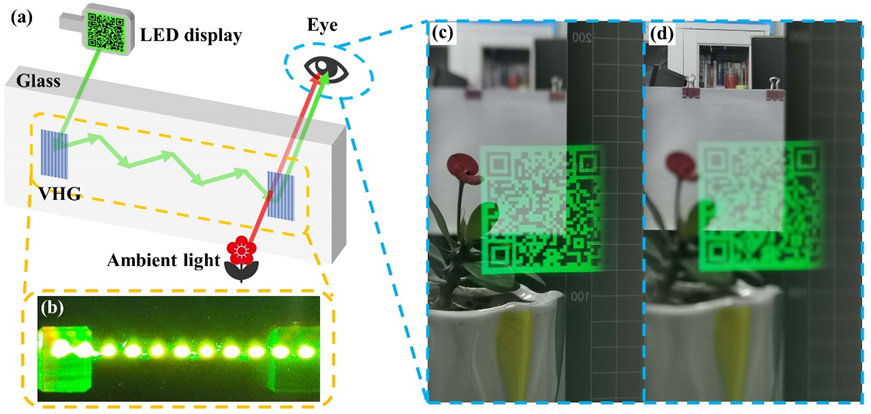 理化所在全息光致聚合物领域有长期的研究积累,近年来深入开展了光致聚合物材料的研究,包括高折射率单体、低折射率成膜树脂、红绿蓝光敏剂等,建立了完善的材料全息性能评价方法,通过快速迭代结合光学方案的创新和优化,目前已获得阶段性进展,用具有完全自主知识产权的材料制备出了高性能的透射式和反射式全息光栅并实现了光波导的原理性验证,所制备的光栅折射率调制度达到0.046,衍射效率达到95.16%,并且在400 nm~800 nm波段的透光率为96.62%,所制备的光波导样品性能已接近实用。正在与光学团队合作开发相关近眼显示和抬头显示产品。