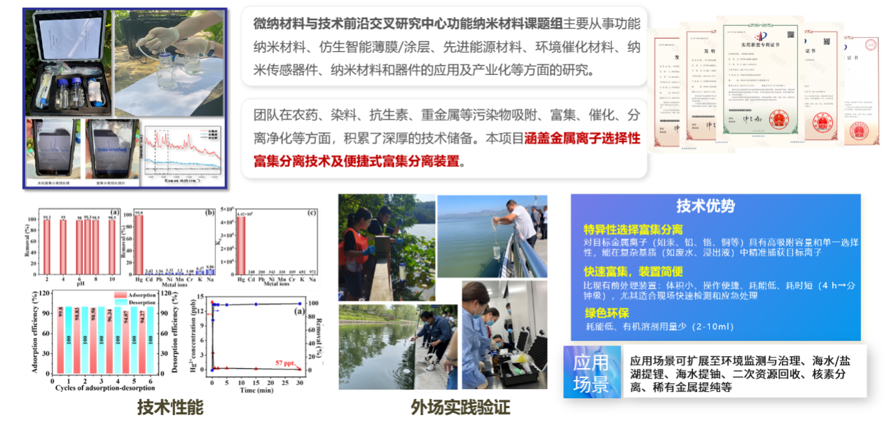 应用场景:可扩展至环境监测与治理、海水/盐湖提锂、海水提铀、二次资源回收、核素分离、稀有金属提纯等。