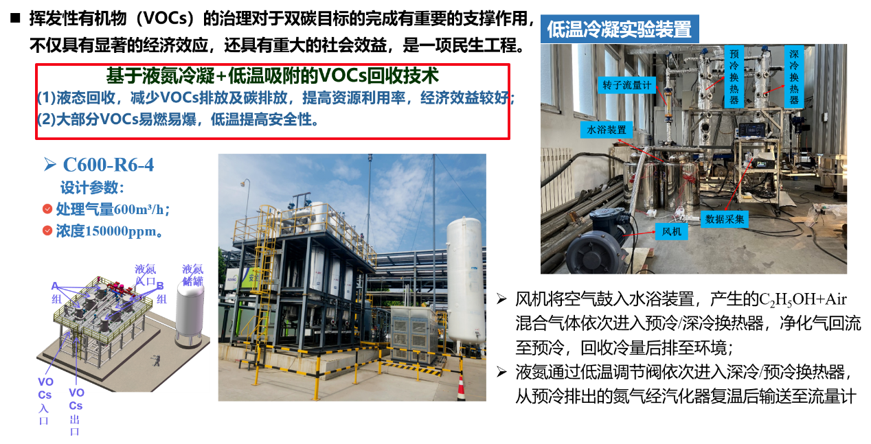 项目介绍:挥发性有机化合物(VOCs)治理可实现减污降碳和资源回收,对助力国家实现双碳目标具有重要意义。常规冷凝技术由于冷凝温度较高,治理后的尾气已难以满足日趋严格的环保排放标准。